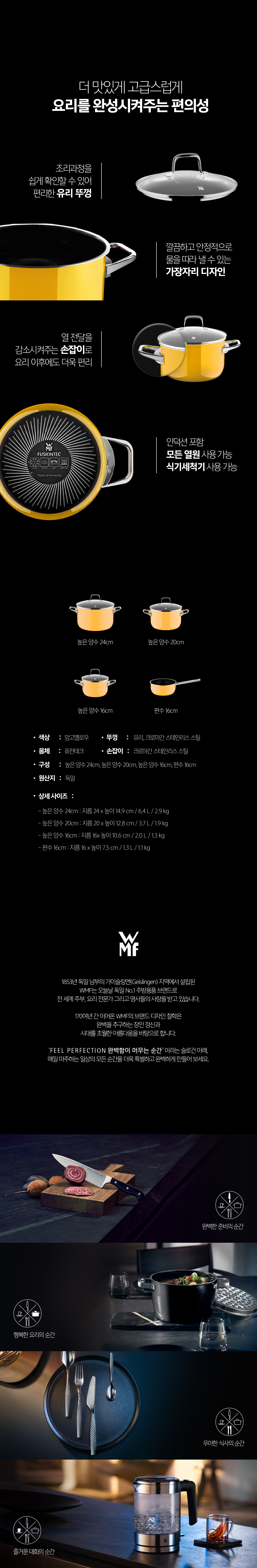 [WMF] 퓨전테크 에센셜 프로 망고 옐로우 4종 냄비 세트